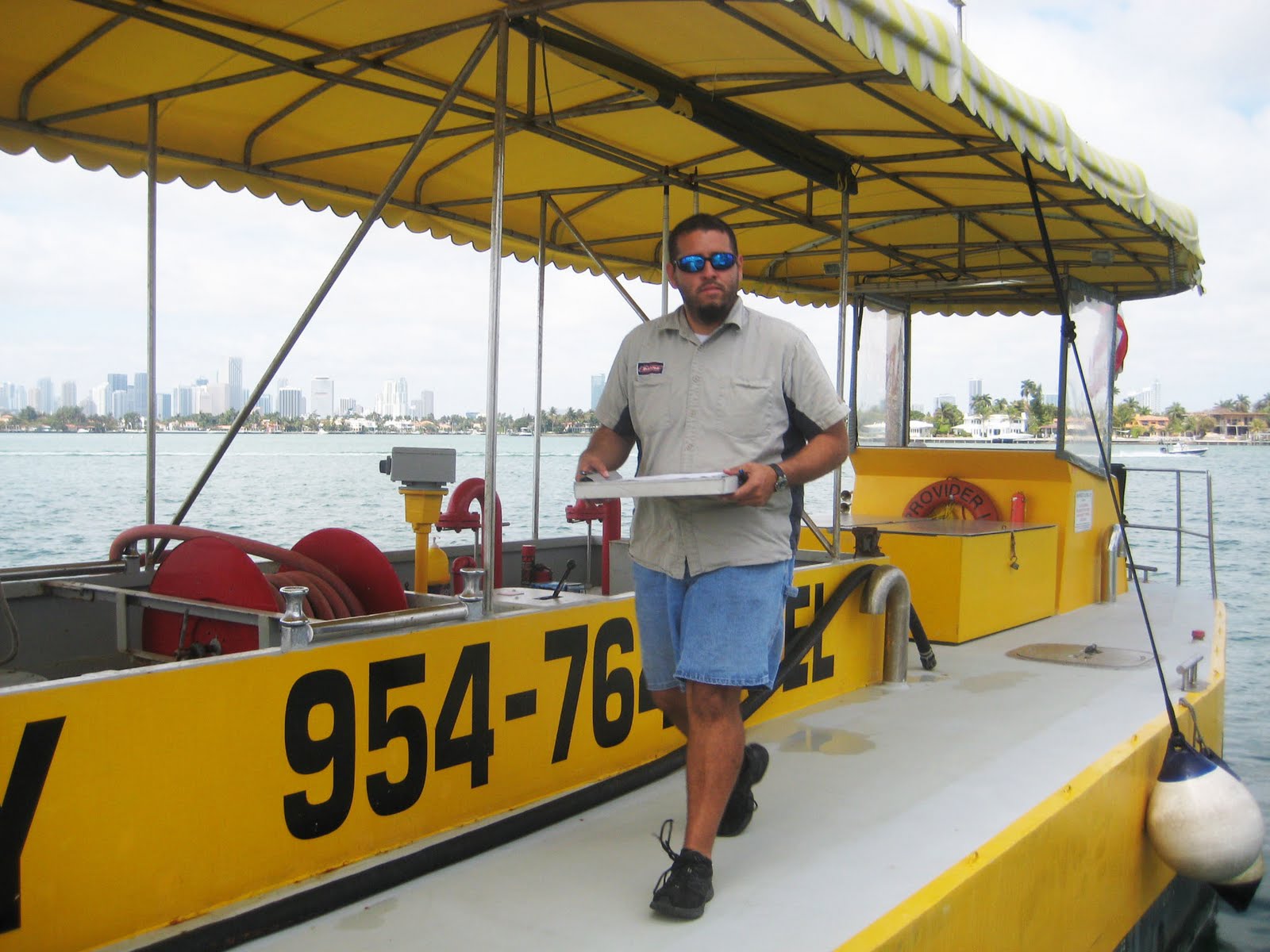 They called me this morning and told me which half hour they'd arrive. Right around the scheduled time we saw the yellow barge coming down the Venetian Causeway access on Biscayne Bay.
